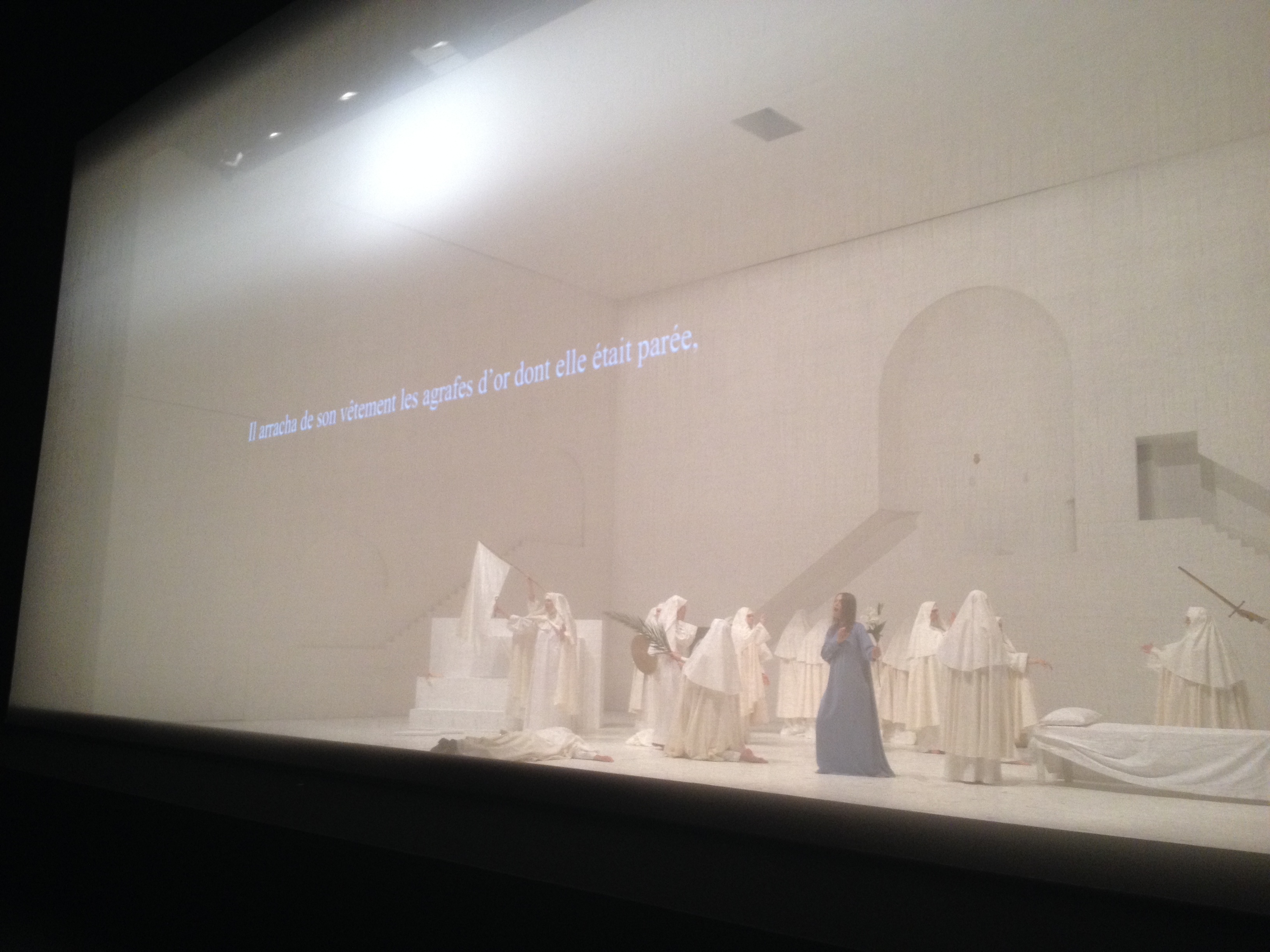 Aujourd’hui, les sur­titres sont là pour nous don­ner la « sub­stan­tifique moëlle » d’un texte, en direct et en syn­chrone avec les acteurs sur scène. Quelle mag­nifique inven­tion ! Quel luxe pour le spec­ta­teur, assis con­fort­able­ment, qui n’a plus qu’à lever les yeux pour com­pren­dre la sig­ni­fi­ca­tion d’une tirade en langue incon­nue.
