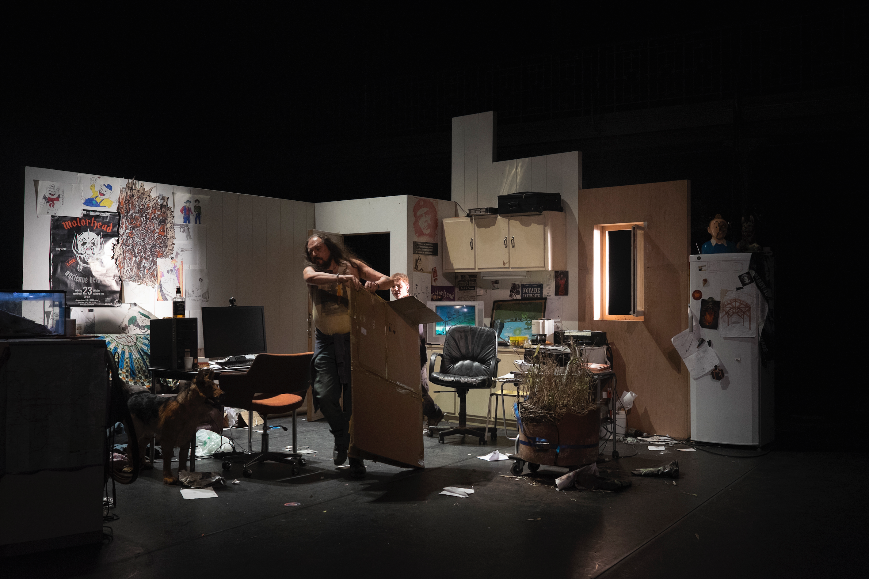 Je crois que c’est un choix de se diriger vers des interprètes qui n’ont pas a priori un jeu « technique » et maîtrisé. C’est une manière de laisser place aux failles et au vivant. Durant les premières répétitions, Claude parle de créer « un effet de réel ». En d’autres termes, il souhaite inventer un microcosme réaliste qui a son organicité propre. Aucun dialogue n’est écrit à l’avance, à dessein, mais il compose un squelette narratif au sein duquel les acteurs amènent la vie, la chair. Il sait dès le début des répétitions quelles scènes composeront le spectacle ainsi que les événements qui les structurent. À partir de là, il propose aux acteurs des situations d’improvisation.
