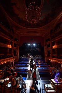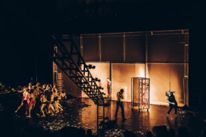 Si j’avais l’idée du spectacle en tête, je n’en avais pas nécessairement la structure. J’avais toutefois écrit les premières scènes, passées au filtre par mon dramaturge Simon Hatab, et j’ai demandé au groupe de travailler sur des thèmes, et des atmosphères, avec une attention particulière accordée aux personnages.
