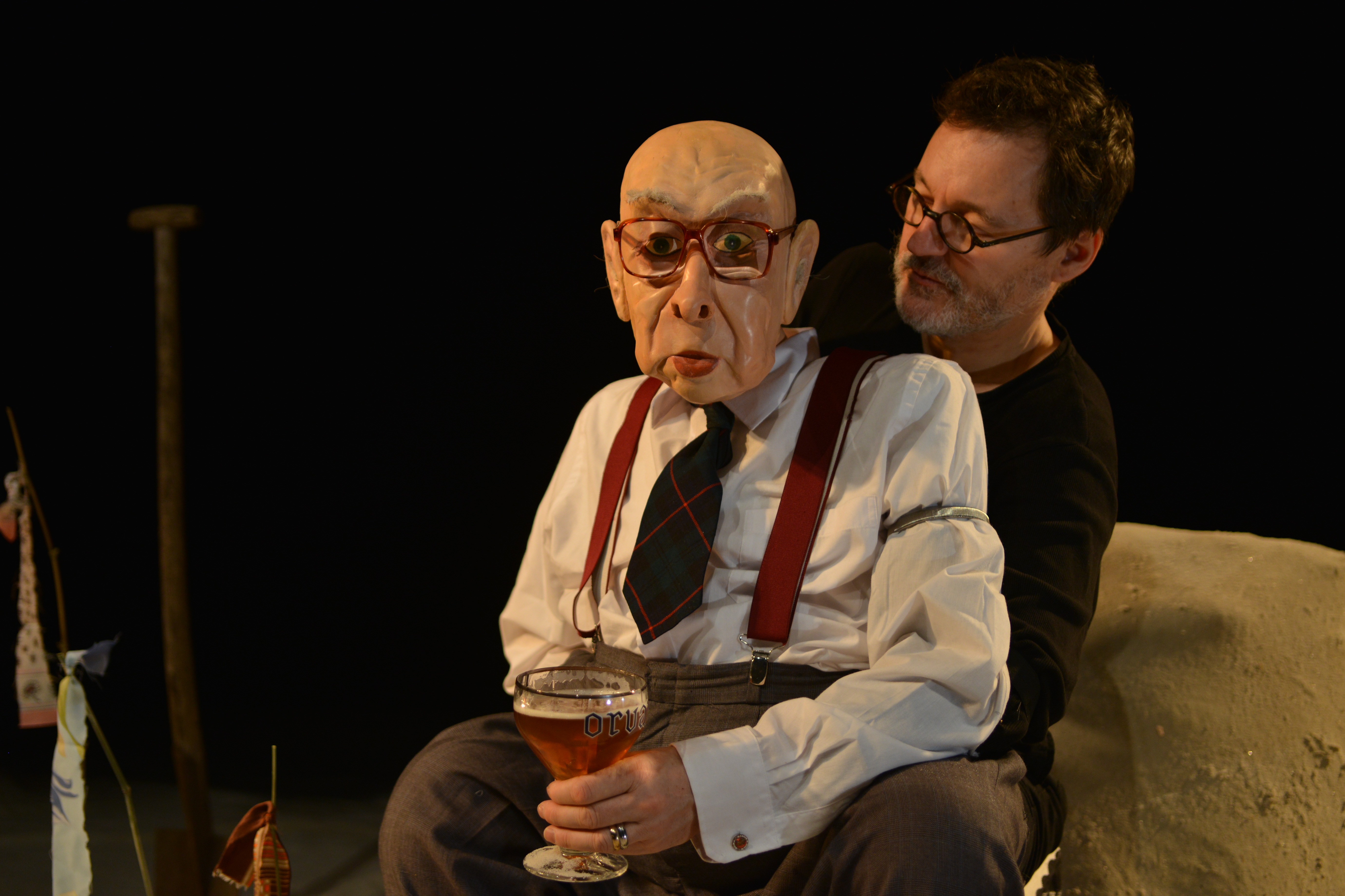 Un vieil homme, marionnette de taille humaine, unie avec son créateur marionnettiste (Alain Moreau) par les jambes et les bras – jusqu’à ce que la mort les sépare. Ou tout le moins la solitude, non pas contrainte mais désirée, choisie.