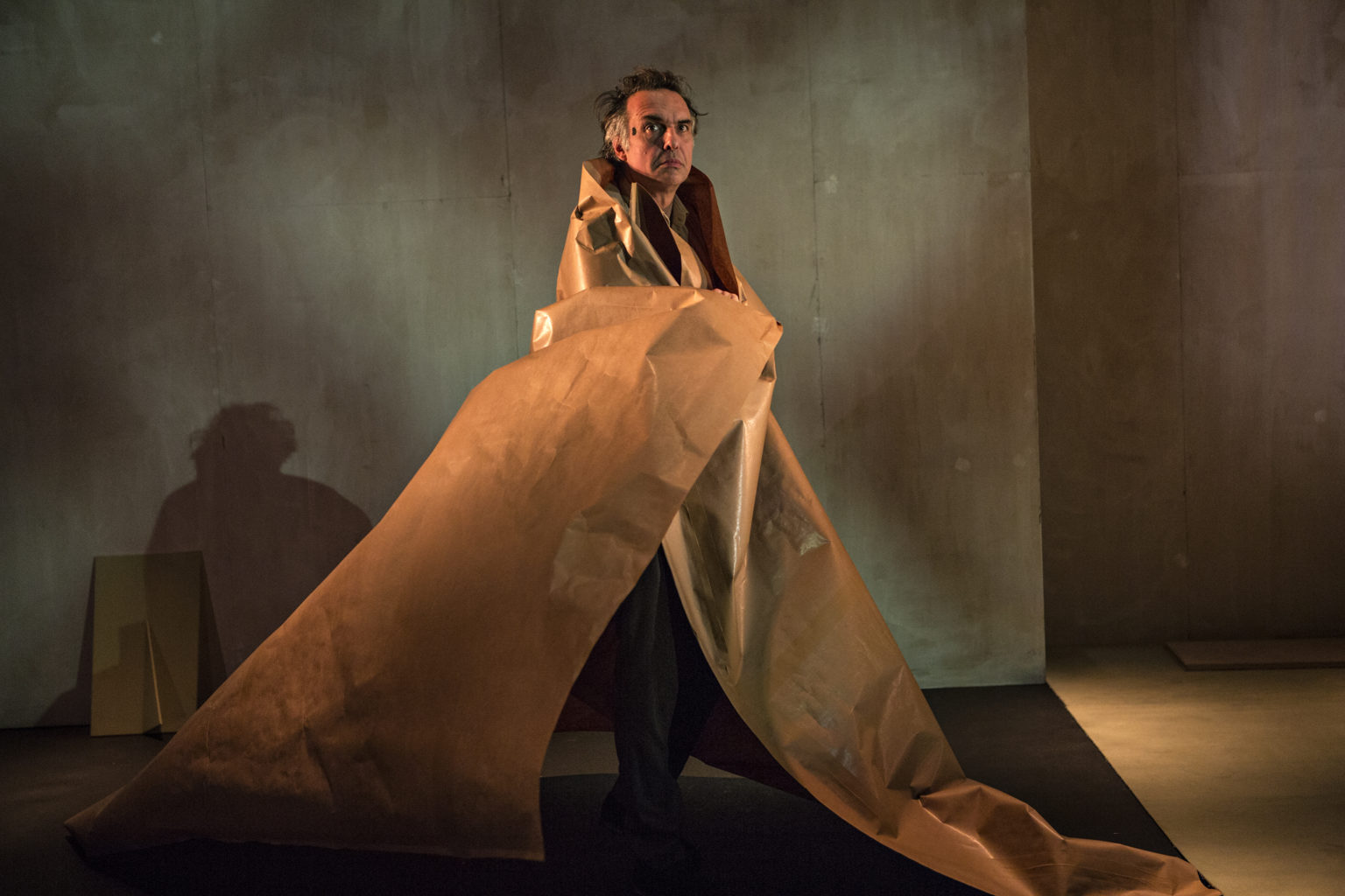 Cette langue virtuose ne nécessitait pas une scénographie envahissante. L’univers de signes soigneusement choisis dans leur sobriété — papier kraft, électrophone année 70, banquettes comme on en voit dans les musées, concourent à la réussite de ce très beau spectacle.