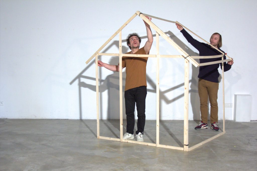 Silvio Palomo : C’est un projet qui a commencé il y a deux ans. Je travaille toujours avec le même groupe de personnes ; certaines sont parties et d’autres arrivées, mais ça reste le même noyau. Nos spectacles se construisent toujours en écho au précédent et à la fin d’Ørigine, les protagonistes se réfugiaient dans un abri pour échapper à la fin du monde. On est parti.e.s de ces questions : qu’est-ce que ce serait de décortiquer les comportements de cette petite communauté qui s’est réfugiée dans un abri ? Comment arrivent-iels à vivre ensemble ? Le spectacle précédent s’arrêtait à la rencontre avec l’autre — on y voyait de la gentillesse, de la politesse, des rapports de surface. On voulait réinterroger ça, mais cette fois dans un lieu avec des personnes qui seraient contraintes de vivre ensemble dans un espace clos. On a commencé à travailler à Montevideo, à Marseille, puis le premier confinement est arrivé, et il a bousculé ce sur quoi on travaillait car c’est devenu la réalité de tout le monde. On est très attaché.e.s à l’idée de s’inspirer du réel mais il important pour nous de le décaler…