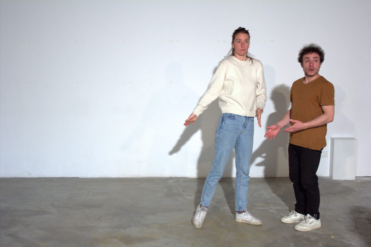 Silvio Palomo : Oui, ça part vraiment de notre rapport au travail et de comment on le donne à voir dans un spectacle. Mais il y a aussi un décalage, et les acteur.rice.s s’en amusent beaucoup sur le plateau. Concrètement, on travaille sur base de contraintes, toujours assez simples à la base : par exemple, l’interdiction de dire « non ». On voit que si on ne peut jamais dire non dans une conversation on arrive à une impasse et ça crée des situations absurdes.
