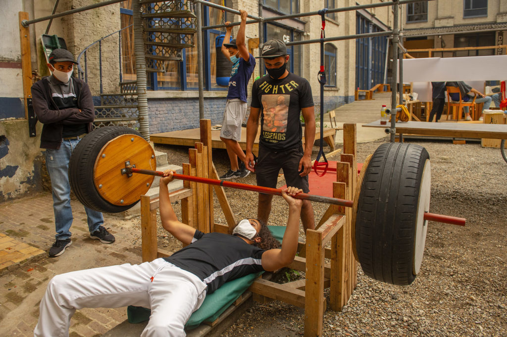 J.W.: Nous organisons des soirées spéciales depuis plusieurs années en collaboration avec le collectif bruxellois d’art et de fête Leaving Living Dakota : iels fournissent le line-up, nous fournissons le bon cadre. Grâce à elleux, Decoratelier s’est fait un nom en dehors du monde de l’art. Fait intéressant, c’était aussi le premier lien avec les jeunes du quartier. Depuis, certains d’entre eux travaillent régulièrement pour nous en tant que videurs ou barmans. De nouveaux plans en sont sortis pendant le confinement, comme le gymnase en plein air de M’hamed. Le temps et la confiance sont essentiels. Avec Camille Thiry, nous avons eu une médiatrice en interne cet été qui s’est concentrée exclusivement sur le contact avec le quartier. Grâce à elle et aux nombreuses conversations que nous avons eues ces dernières années, nous comprenons un peu mieux la diversité au sein d’un tel groupe de jeunes et nous ne devons pas fermer la porte à tout le monde si quelques-un.e.s font parfois des erreurs. De plus, je suis suffisamment anti-autoritaire pour comprendre certains de leurs réflexes et engager un dialogue vulnérable. Il était clair dès le départ que nous ne sommes pas des travailleur.euse.s sociaux.iales et qu’iels ne sont pas un groupe-cible dans notre dossier de subventions. S’iels veulent faire quelque chose de cet endroit, nous pouvons les aider, mais iels doivent d’abord le faire elleux-mêmes.