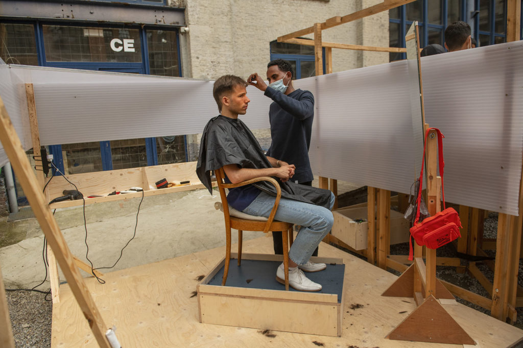 Pendant Something when it doesn’t rain, vous pouviez vous rendre dans théâtre en plein air respectant les normes de sécurité Covid pour des projections de films, des ateliers de danse, des débats et des micros ouverts. Quiconque souhaitait programmer une soirée pouvait simplement s’inscrire. Le cinéaste Enzo Smits servait des glaces aux « saveurs du quartier Heyvaert » dans une réplique de l’emblématique café Greenwich. Le coach de fitness M’hamed gérait une salle de sport avec des équipements auto-construits avec Youssef, Younes et Cissé, résidents du quartier. Et on allait chez Fars pour une coupe de cheveux sous le soleil. On avait rarement vu un public aussi diversifié se rassembler en un seul endroit.