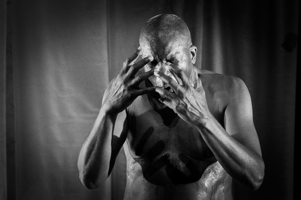 Pourtant dramaturge, Aimé Césaire n’avait peut-être pas envisagé de mettre en scène le Cahier. Mais comme s’il avait prévu cette adaptation théâtrale, le poète met déjà en garde contre les pièges d’une tragédie trop simpliste : « la vie n’est pas un spectacle, car une mer de douleurs n’est pas un proscenium, car un homme qui crie n’est pas un ours qui danse ». Jacques Martial a eu l’excellente idée de prendre rigoureusement au sérieux ces mots du Cahier jusque dans leur scepticisme face au spectaculaire. Sa performance d’acteur est espacée de larges respirations en mouvement, comme pour témoigner de la lourde fatigue de l’oppression qui traverse parfois le poème. Elle fait aussi entendre le flux et le reflux du grand vent qui est un de ses personnages principaux… Car c’est à la force du vent que s’adresse la parole furieuse qui nous interpelle à la fin du poème. Le vent, c’est aussi le souffle de cette bombe littéraire qui continue de porter l’espoir d’une humanité qui s’exprime à la troisième personne du pluriel, qui serait « nous » jusqu’au bout de nous-mêmes, « jusqu’au nous furieux », qui nous « embrasse, embrasse NOUS ».