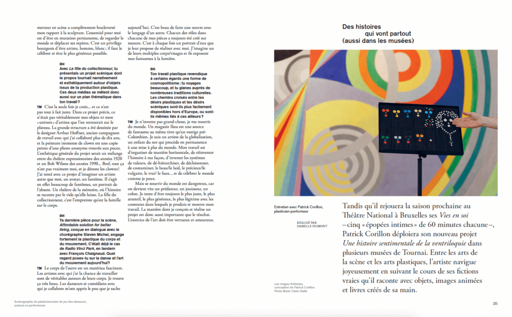 Quelles relations singulières unissent les créateurs d’art contemporain et de théâtre, danse, musique, opéra, cirque ou marionnette... ? Après avoir posé quelques jalons de l’histoire des oeuvres plastico-scéniques, particulièrement riche depuis l’aube du xxe siècle, nous donnons la parole à plusieurs auteures et auteurs de formes hybrides contemporaines. Metteurs en scène-scénographes, performeurs-sculpteurs ou chorégraphes-plasticiens, ils sont à l’affût de la théâtralité dans la peinture et du mouvement dans la sculpture, inventeurs de scénographies animées ou de théâtre matiéré. Peu soucieux des catégories et ouverts à l’alchimie des arts.