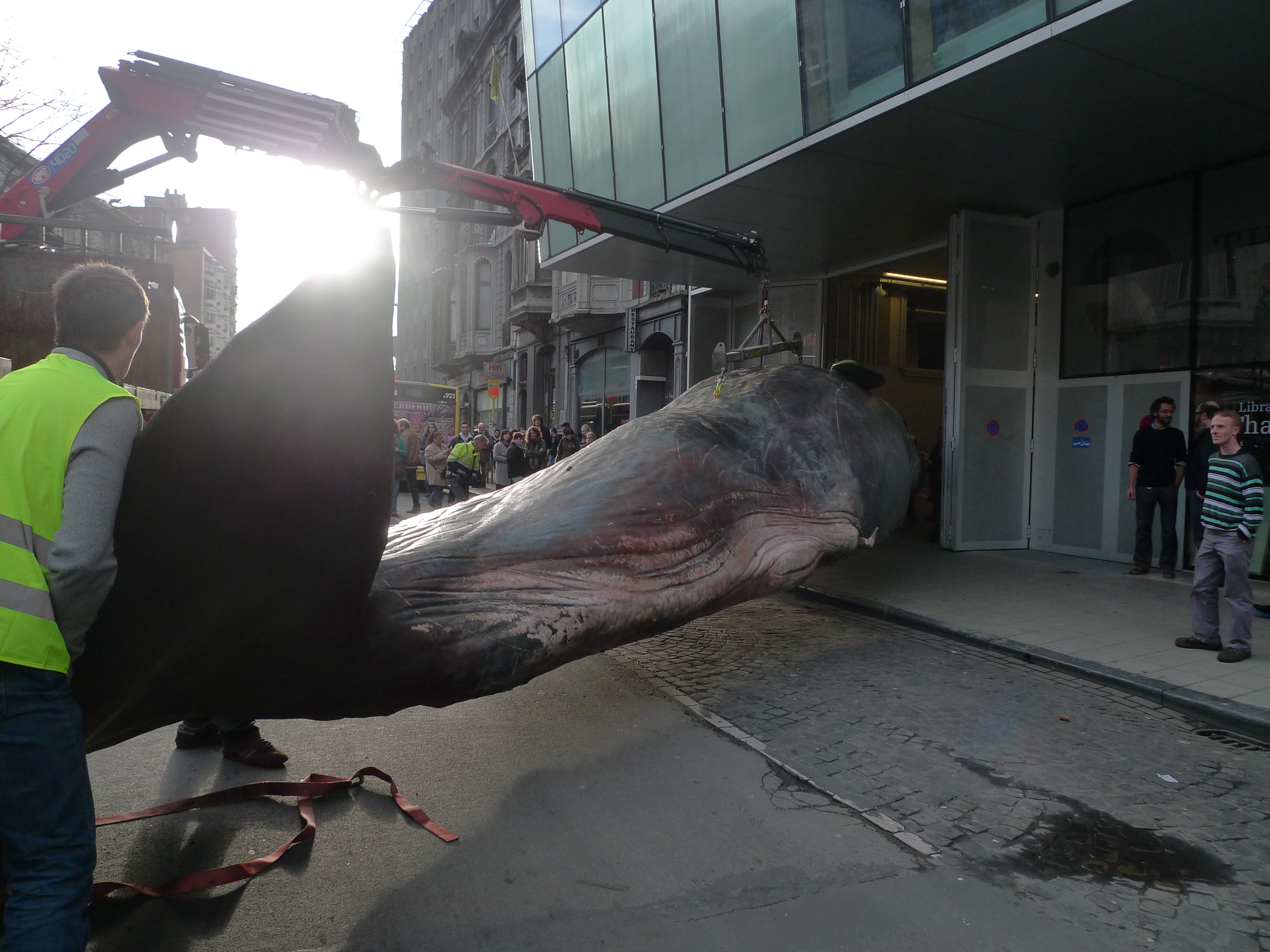 Arrivée du cachalot au Théâtre de Liège. Photo © Bernard Breuse.