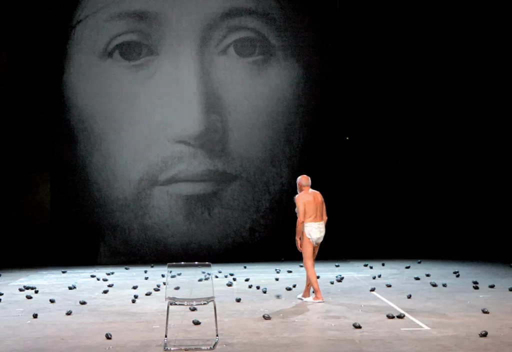 Joe Kelleher : Notre thème est la voix au théâtre, mais je ne peux m’empêcher de commencer par un commentaire sur l’écriture et le silence. Peut-être parce que je suis frappé de ce que votre récent spectacle SUL CONCETTO DI VOLTO NEL FIGLIO DI DIO, qui a déclenché une tempête de critiques hors du théâtre (dont bon nombre émises par des personnes qui n’avaient pas assisté à la pièce dans ce théâtre), est particulièrement « éloquent » sur le silence.