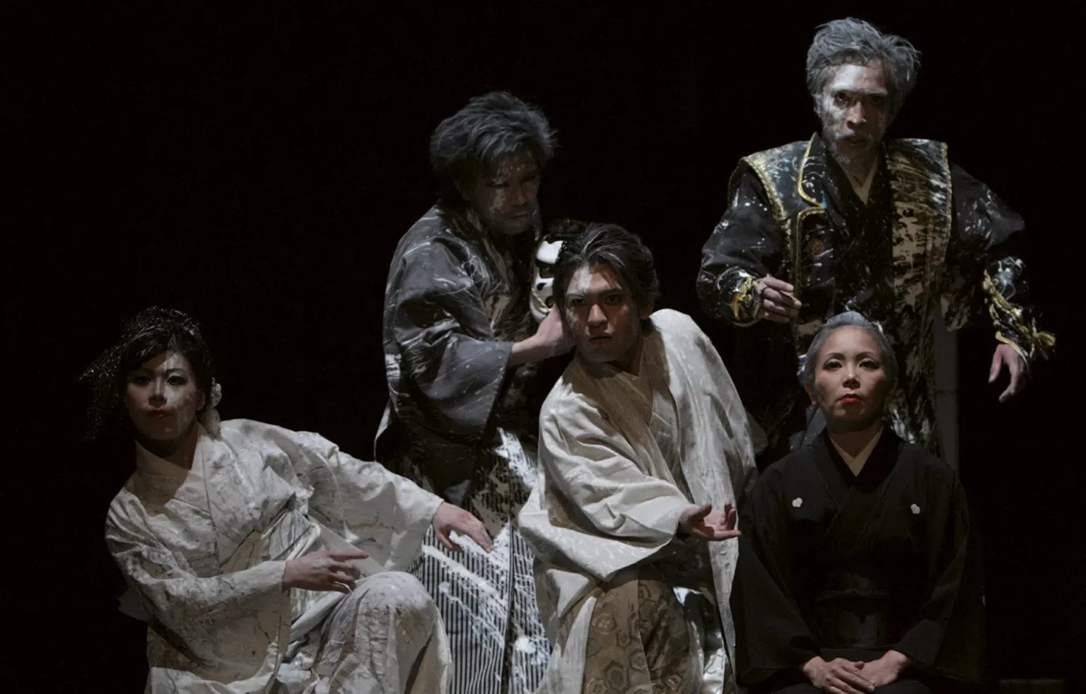 À Craio­va – décidé­ment la Roumanie s’ouvre au Japon ! – un HAMLET du groupe Ryu­topia ayant pour met­teur en scène Yoshi­hi­ro Kuri­ta con­fir­ma, lui aus­si, la com­mu­ni­ca­tion pos­si­ble de ces cul­tures théâ­trales, ori­en­tale et occi­den­tale, rad­i­cale­ment dif­férentes, étrangères l’un l’autre, mais seule­ment lorsqu’un grand artiste s’empare. Le Nô, on le sait, ne s’accomplit jamais au présent, il est la remé­mora­tion du waki, l’homme du coin, qui ranime des per­son­nages et s’immerge dans la mémoire des faits anciens. His­toire d’un retour… d’un passé « per­du et retrou­vé ». Le waki con­voque ses sou­venirs qui s’incarnent et s’animent, en emprun­tant le fameux pont hashigakaripour s’exposer sur le miroir du plateau bor­dé par des cèdres et des piliers en bois noble. Dans le spec­ta­cle de Craio­va, le prince Ham­let se voit attribué le statut d’un waki, témoin qui réac­tive les faire et gestes de jadis, qui se con­sacre à la remé­mora­tion de son drame. Si son ancêtre japon­ais reste immo­bile dans « le coin », le prince tan­tôt s’isole, tan­tôt par­ticipe aux événe­ments, il est égale­ment réc­i­tant et par­tic­i­pant. Et ain­si le spec­ta­cle tout entier allie l’exercice de résur­rec­tion des faits anciens et les agisse­ments actuels du prince. Con­fu­sion des durées… inou­bli­able Nô shake­spearien !