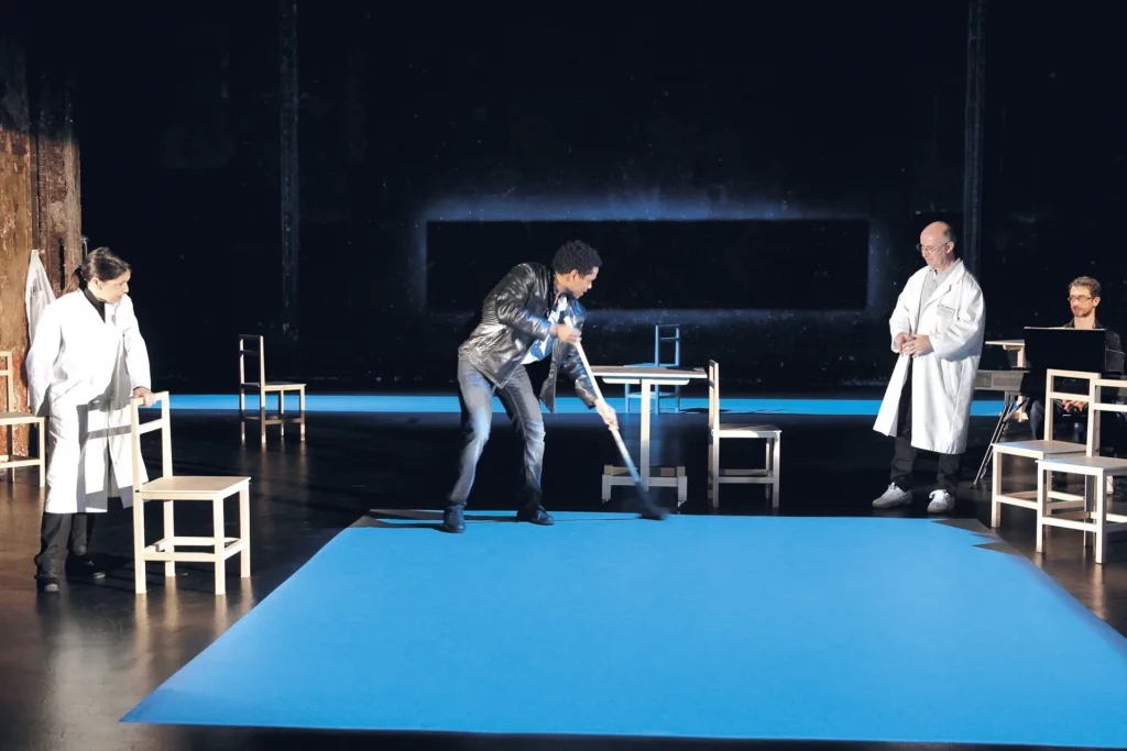 les comportements des humains. Le spectacle développe cette image hybride de l’ homme-oiseau pour éviter et l’abus nuisible de concret et son absence dérangeante ; cette double assise préserve l’incertitude de l’entre-deux, qui permet à Brook de raconter la parabole tout en la matérialisant théâtralement. L’épopée d’Attar se retrouve grâce à cette dialectique dont la scène s’érige en foyer.