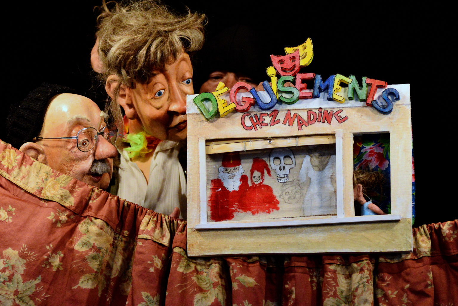 Leur fac­ture tend vers ce qu’on pour­rait appel­er un « réal­isme poé­tique ». En effet, elles ont des vis­ages rich­es en détails, mais leur dessin a quelque chose de car­i­cat­ur­al, et Alain More­au ne recherche pas l’hyperréalisme : même quand les mar­i­on­nettes sont à taille humaine, leurs yeux sont peints, et la fini­tion de la peau lui donne un aspect ver­nis. Ce mi-chemin entre ressem­blance et pas de côté assumé en dehors du réal­isme ouvre un espace de poésie. Trois mar­i­on­nettes sont ici grandeur nature, portées à même le corps des mar­i­on­net­tistes, comme c’est le cas dans d’autres spec­ta­cles comme Les Bénév­oles – auquel deux des mar­i­on­nettes sont d’ailleurs emprun­tées. Mais on le retrou­ve égale­ment dans les mar­i­on­nettes de petite taille qui sont util­isées pour organ­is­er une pièce de théâtre à l’intérieur de la pièce de théâtre. « Ce sont des mar­i­on­nettes qui manip­u­lent d’autres mar­i­on­nettes à leur effigie qui racon­tent leur his­toire sup­posée », explique Alain More­au. Les inter­prètes négo­cient avec habileté cette manip­u­la­tion gigogne, qui exige une atten­tion démul­ti­pliée et une pré­ci­sion de mou­ve­ment très fine.